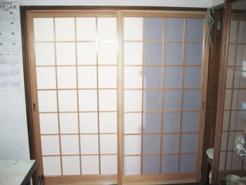 | 和紙調の引き違い戸が新鮮さを引き立たせています。 |