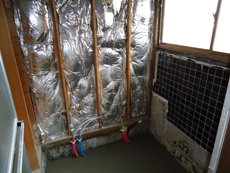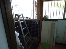 | 解体後配管してから土間コンクリートを打設します。 | 片引き戸にするので洗面所との間の壁も取り払います。 |