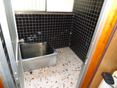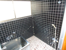 | ステンレスの小さな浴槽でした。 | 震災の影響でタイルの壁がひび割れています。 |