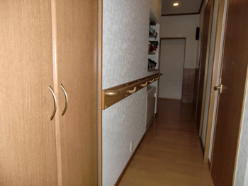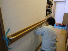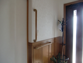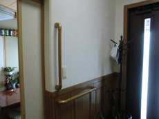 工事費の9割を介護保険で負担する介護住宅改修を使って、転倒防止の為の手すりを設置した介護リフォームです。 K様が自ら作成した工程表のおかげで、ケアーマネージャーとの打合せもスムーズに行うことができ、しっかりとした手すりが完成しました。 |