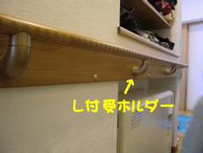 | 靴を脱いだり履いたり、上がり框への上り下りも楽になります。 | 手すりが長い場合は中間にL付受ホルダーを数箇所設置します。 |