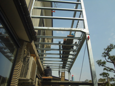 | フレームを外壁に取り付けます。 |
