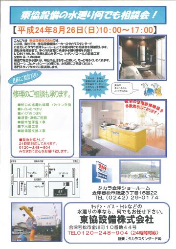 日時2012/8/26(日) 10:00~17:00 会場タカラ会津ショールーム